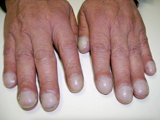 Đây là tình trạng móng tay cong tròn theo chiều ngang và dọc, bao quanh các đầu ngón tay. "Đây không phải là biểu hiện của móng khỏe mạnh. Nó có thể là dấu hiệu sớm của tình trạng thiếu oxy, bệnh phổi, suy tim hoặc bệnh gan", chuyên gia dinh dưỡng cảnh báo.